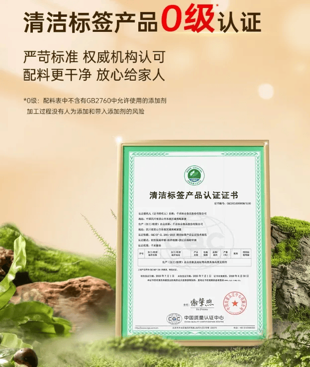 “零添加”琳琅满目,到今天“洁净标签”认证崭露头角;从国内品牌的同质化合作,到中国味道扬帆出海10月底,2025千禾味业产物焕新暨洁净标签产物0级认证发布会召开。千禾味业颁布发表,千禾0系列酱油仅用4种或5种配料,相关目标均合适“洁净标签”要求。目前,公司相关产物已通过中国质量认证核心的现场审核、抽样检测和审核,获得洁净标签产物0级认证。