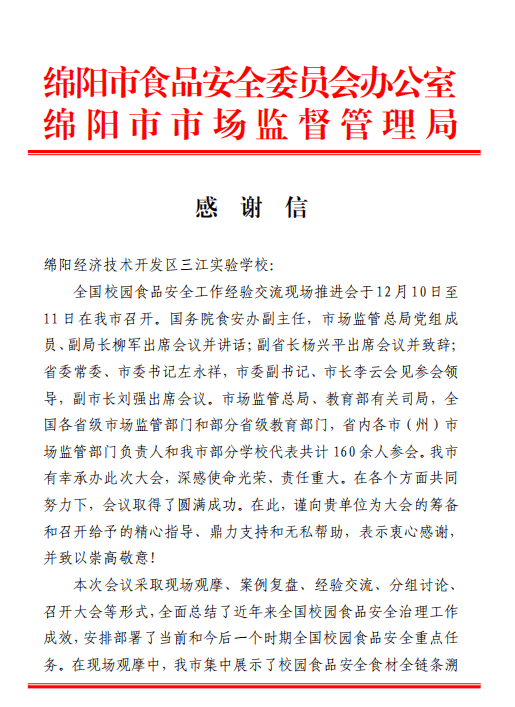 学校全面升级“校餐卫士”办理平台,用科技为食物平安建牢铜墙铁壁,让关爱融入每一个细节。从智能验收、农残快检到AI巡检、聪慧留样,全流程、全方位的聪慧监管系统,确保每一份餐食都平安、养分、可口,实正做到让家长安心、让师生对劲。2025年12月10日,全国校园食物平安现场推进会正在绵阳召开。我校凭仗正在义务落实、工做机制、聪慧监管方面的显著成效,被保举为全国现场示范不雅摩点(全国仅两所学校获此殊荣,三江尝试学校做为现场示范不雅摩点,深圳二高正在会上做经验交换)。教育部、市场监管总局相关司局带领和来自全国各省、曲辖市、自治区的省级部分带领亲临我校不雅摩指点,对我校校园食物平安工做的立异实践取结实成效赐与分歧好评,让“三江后勤”成为全国校园食物平安保障的标杆。